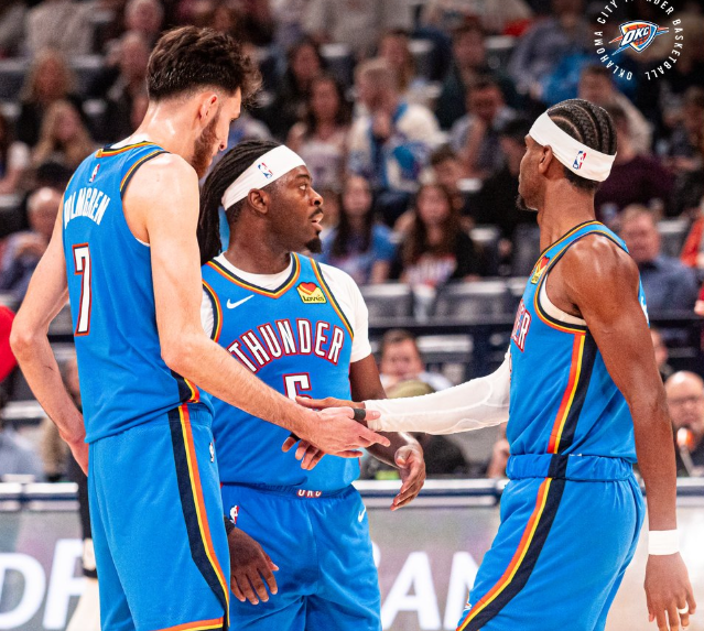 卫冕冠军雷霆本赛季初期的表现非常强势,一度追平了当年73胜勇士的历史最佳开局,虽然赛季中期状态出现了一定起伏,但是在亚历山大的率领下,很快回到了赢球的轨道,在连续击败犹他爵士、孟菲斯灰熊和迈阿密热火之后,雷霆以33胜7负的战绩,高居西部积分榜第一。